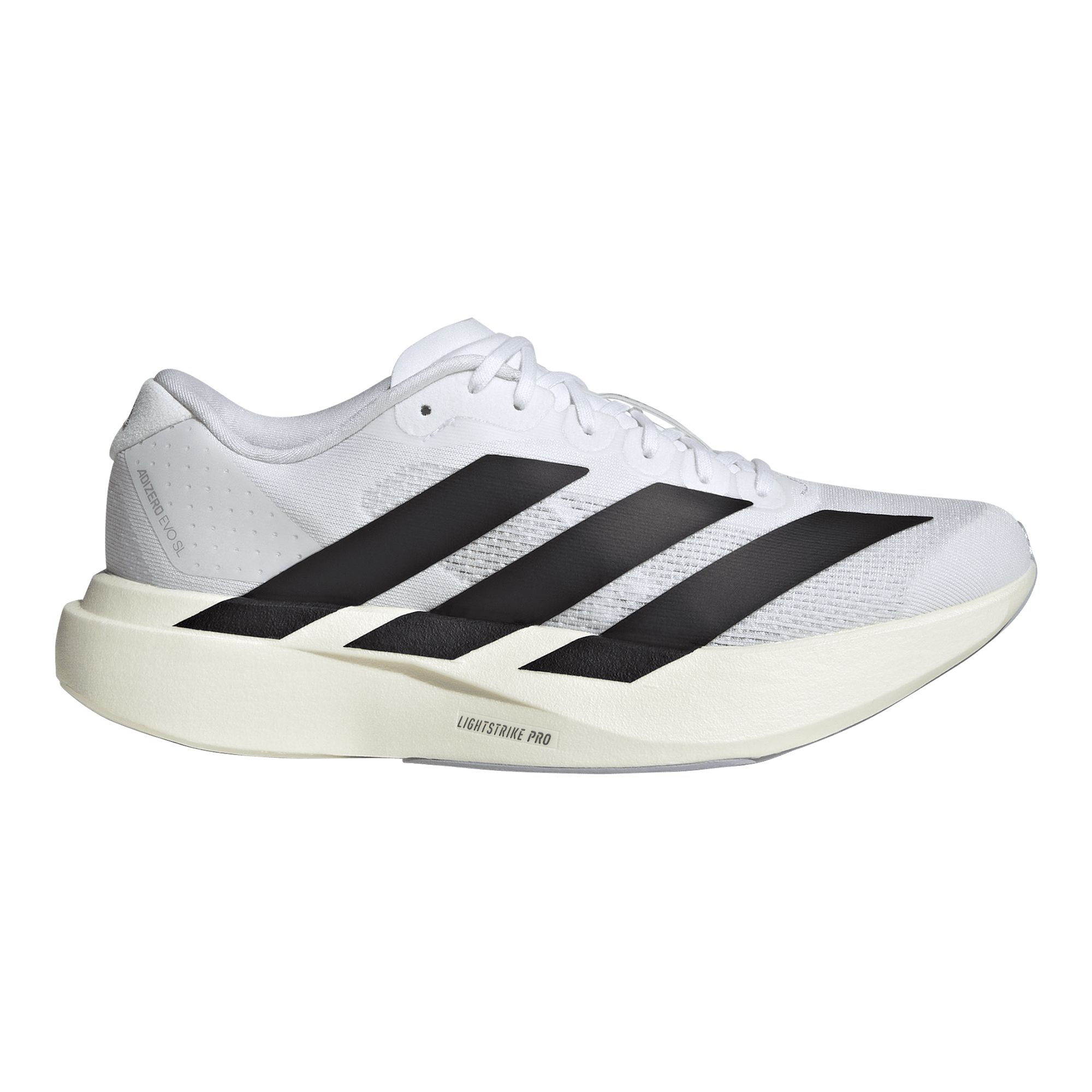Adidas Adizero EVO SL Shoes W är utvecklade för löpare som vill känna lätthet, fart och respons i varje steg. Inspirerad av de banbrytande modellerna i Adizero-serien förenar skon tävlingskänsla med bekväm prestanda för både träning och lopp. LIGHTSTRIKE PRO-mellansulan ger en mjuk men energifylld dämpning som driver steget framåt och minskar belastningen under längre pass. Ovandelen i syntet och textil sitter följsamt runt foten för stabilitet och ventilation. Med Continental-gummi i framfoten och Clear Rubber i hälen får du pålitligt grepp på olika underlag. Låg vikt och 6 mm dropp gör Adizero EVO SL till ett snabbt och smidigt val för alla som älskar fartfylld löpning.