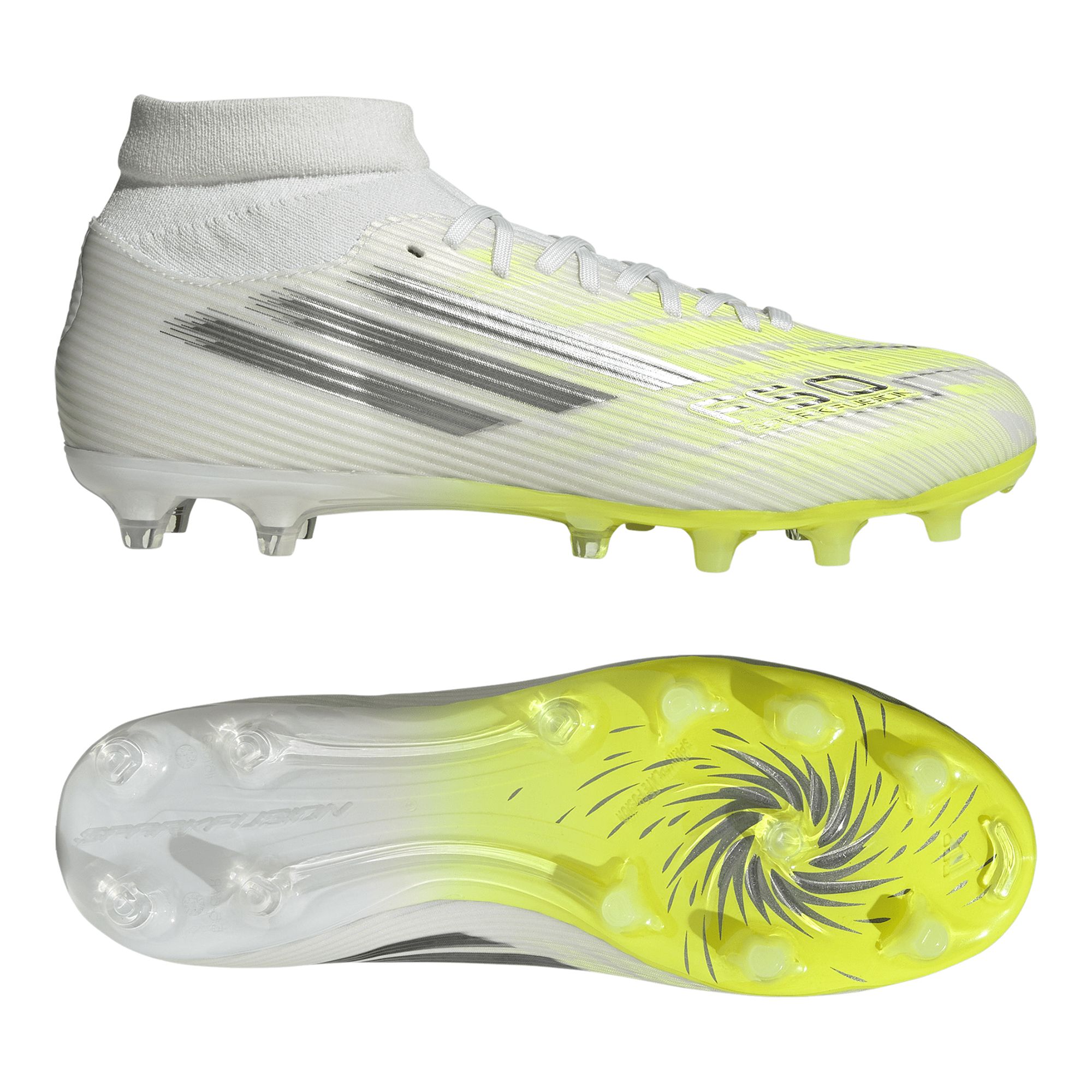 Adidas F50 Sparkfusion League FG/AG är fotbollsskor för damer som vill spela med hög precision, stabilitet och snabbhet på både naturgräs och konstgräs. Den midcutstickade kragen formar sig efter foten och ger en trygg, omslutande känsla som bidrar till stabilitet vid snabba rörelser. Ovandelen i Fiberskin kombinerar lätt stöd med en följsam känsla och förbättrad bollkontakt, medan Fusionlast-designen är anpassad för en kvinnlig passform och ger bättre komfort över hela foten. Sprintplate Fusion-yttersulan är utvecklad för att ge effektivt grepp, jämn tryckfördelning och smidig rotation tack vare de halvkoniska dobbarna, vilket underlättar snabba riktungsförändringar. Den textila innersulan ger extra komfort, och den klassiska snörningen gör det enkelt att anpassa passformen. Ett utmärkt val för spelare som vill kombinera prestanda och stil.