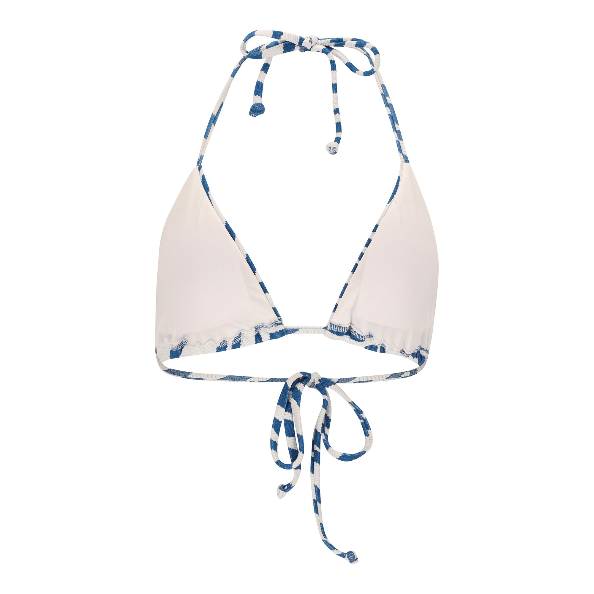 Mönstrad bikiniöverdel i triangelmodell med lätt support, snabbtorkande material och UV-skydd.
