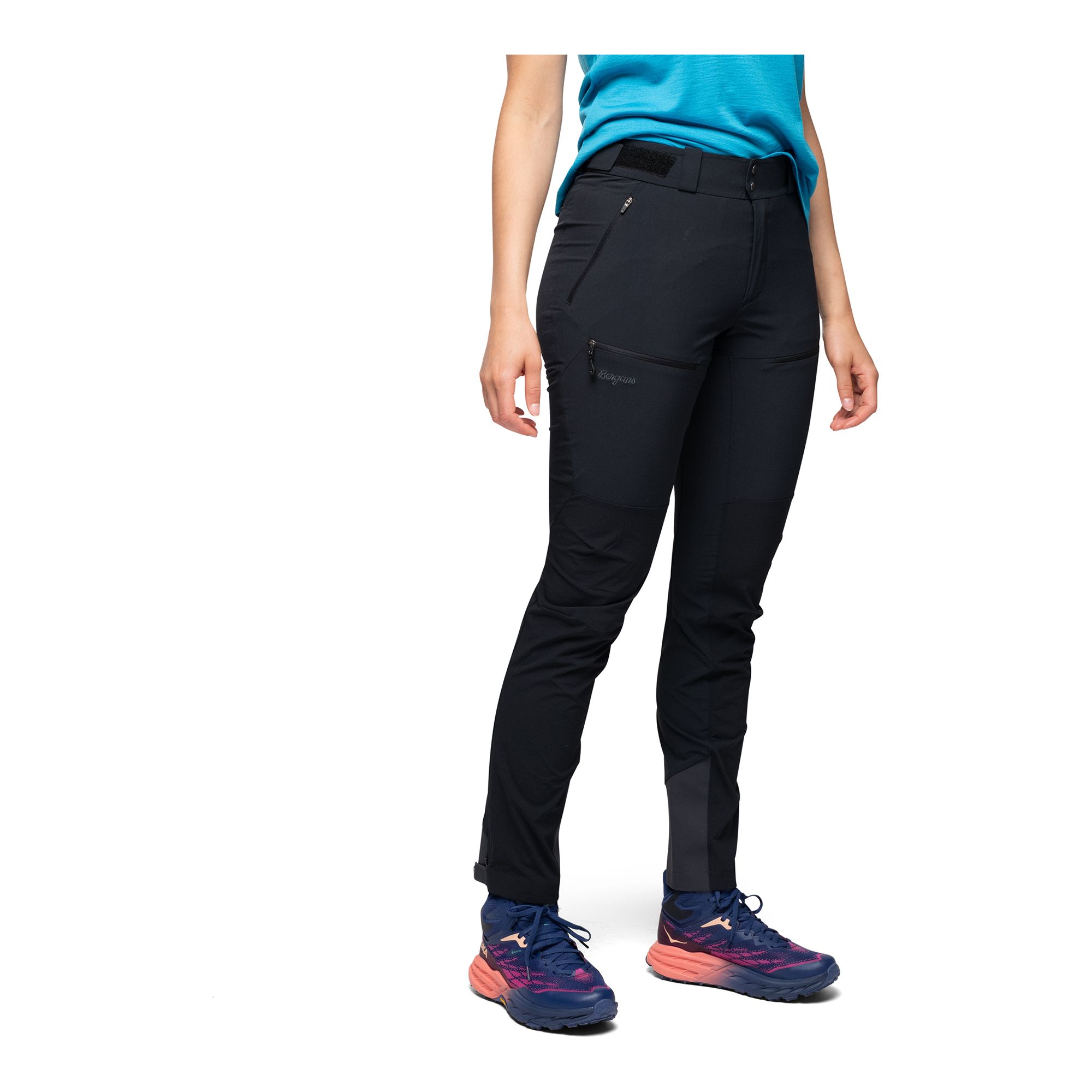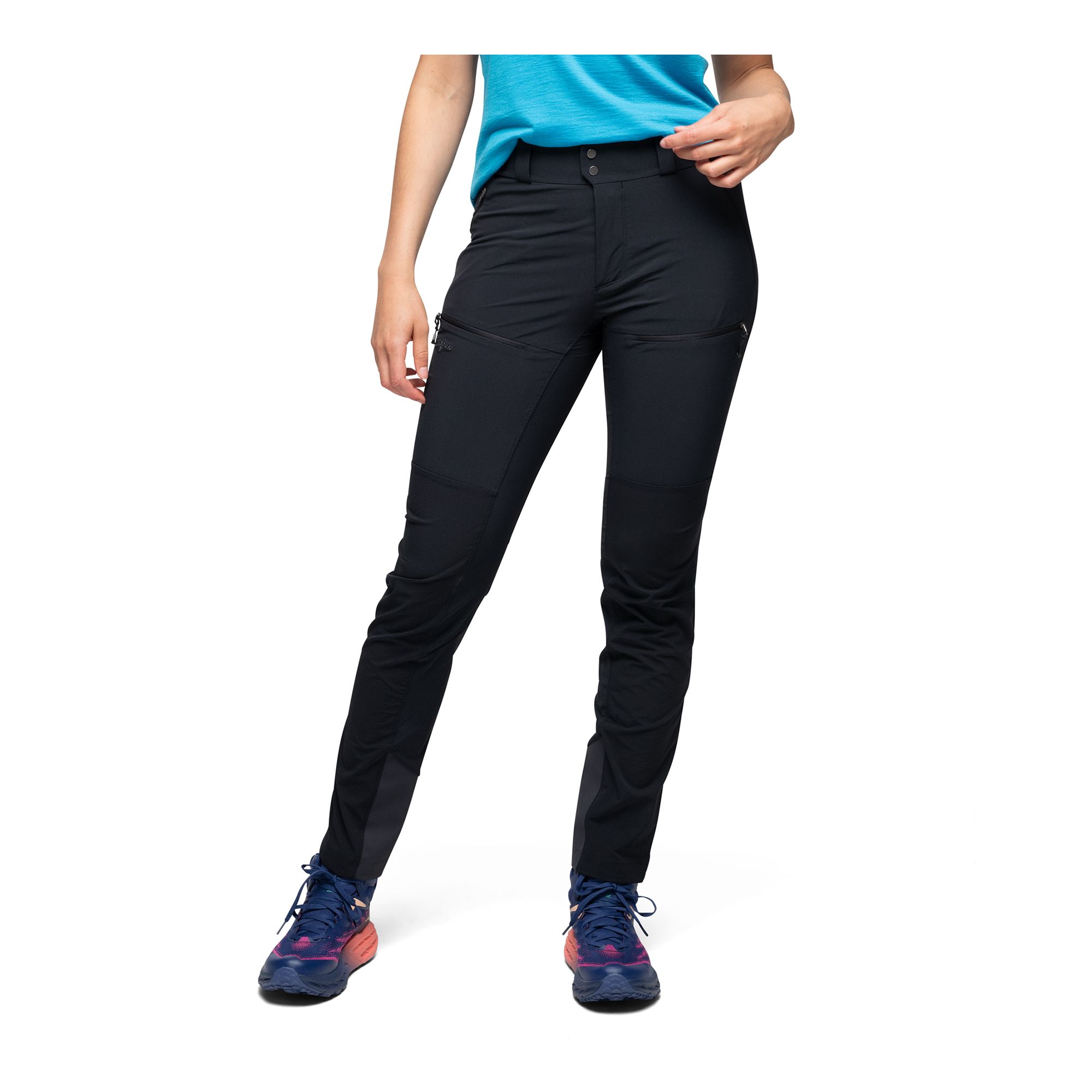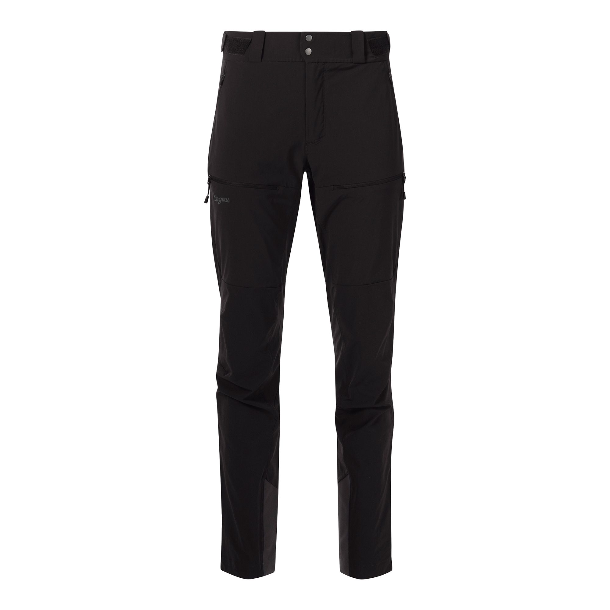 Bergans Of Norway Rabot Softshell Pants Women är mångsidiga friluftsbyxor utvecklade för året-runt-bruk med fokus på komfort, slitstyrka och skydd. Den avancerade tvåtygskonstruktionen kombinerar vind- och vattenavvisande material på utsatta delar med ett mer ventilerande och fukttransporterande tyg på baksidan av benen och över höftpartiet. Resultatet är en byxa som tål tuffa förhållanden utan att kännas tjock eller tung, och som ger bra ventilation även under mer intensiv aktivitet. Den nära passformen ger en följsam känsla, medan detaljer som justerbar linning, förböjda knän och panelkonstruktion i grenen bidrar till hög komfort i rörelse. Dragkedjor, förstärkning på underbenen och justering i bensluten gör det enkelt att anpassa byxorna efter terräng och stora vandringskängor.