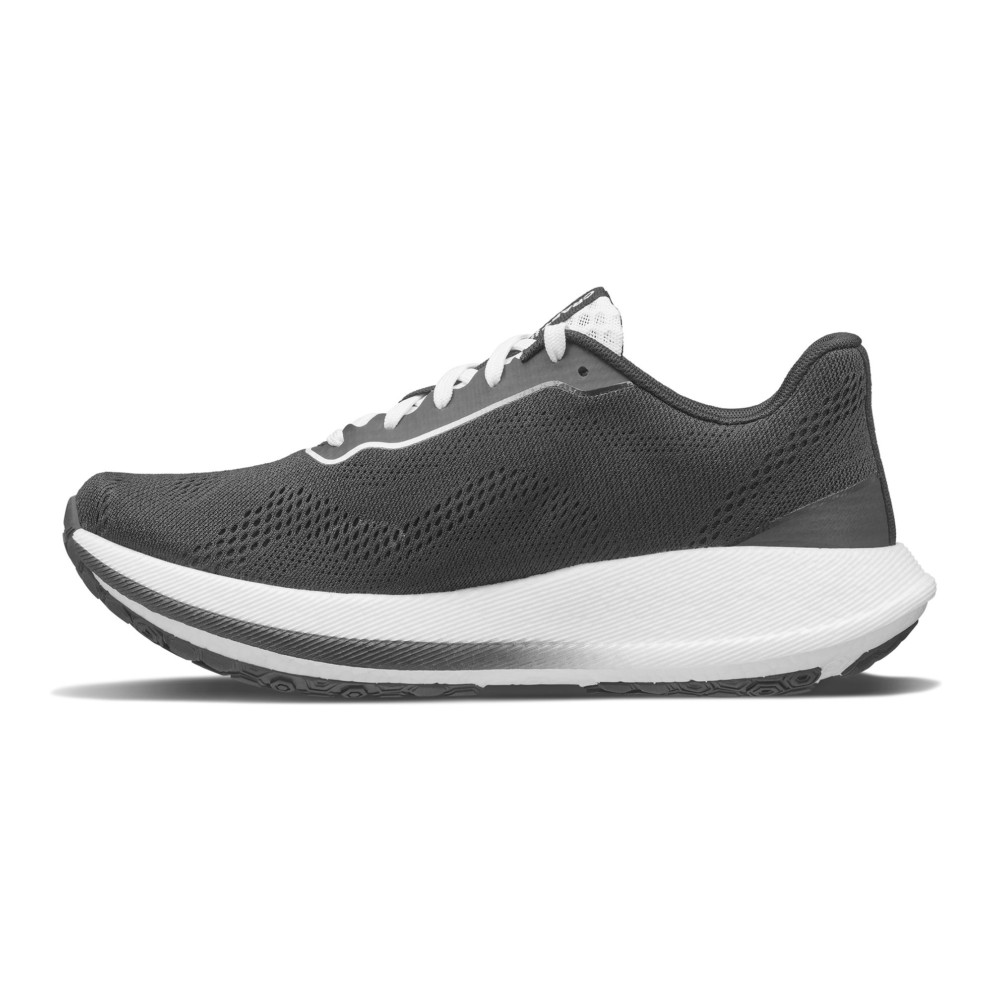 Ovandelen i 2-lagers mesh, tillverkad av 50 % återvunnet material, är zonanpassad för att ge både ventilation och stabilitet där det behövs som mest. Tillsammans med extra skum i kragen ökar detta komforten markant. Px Foam™-mellansulan är 20 % lättare än traditionell EVA, giftfritt framställd och 100 % återvinningsbar – en innovation som ger både låg vikt och hög stötdämpning.