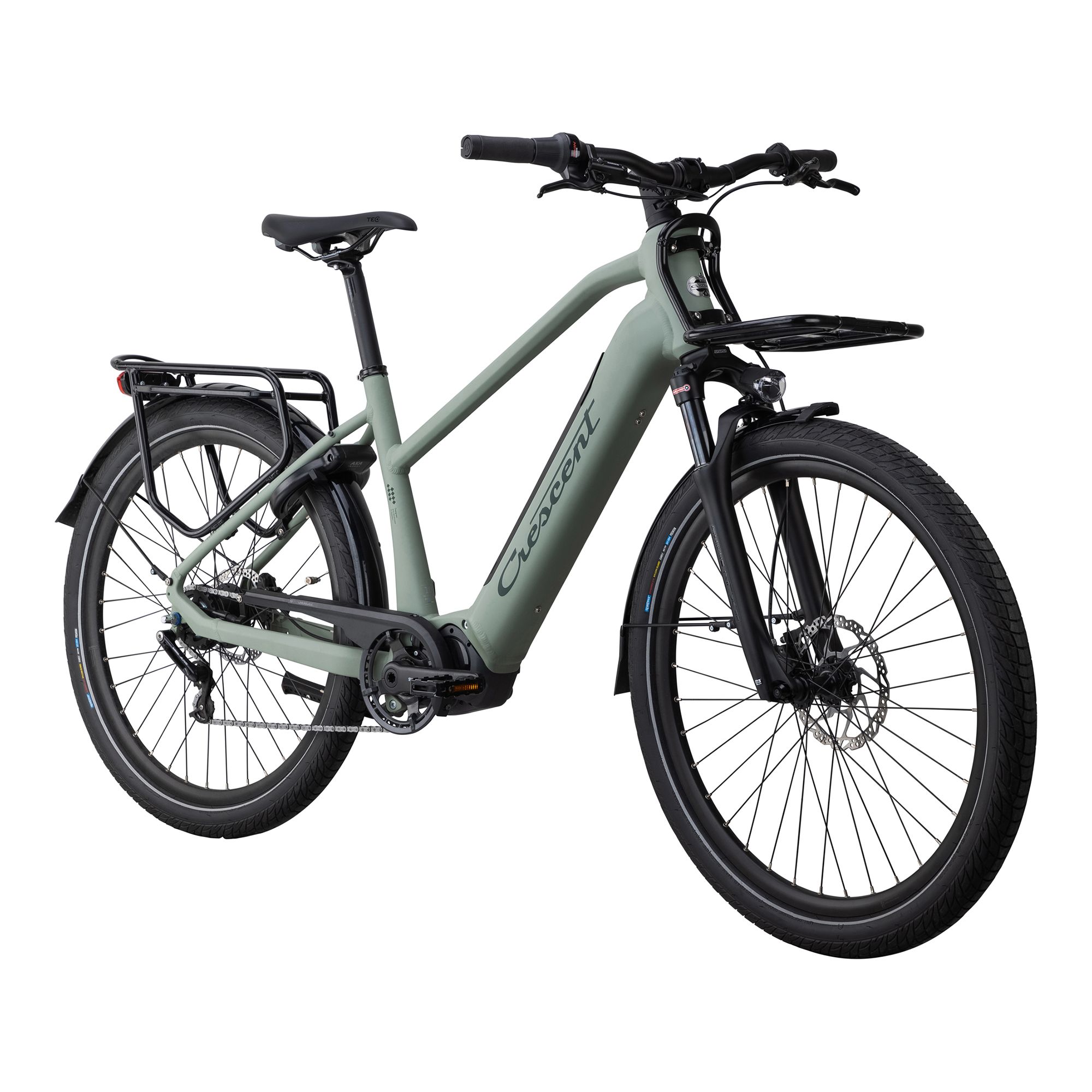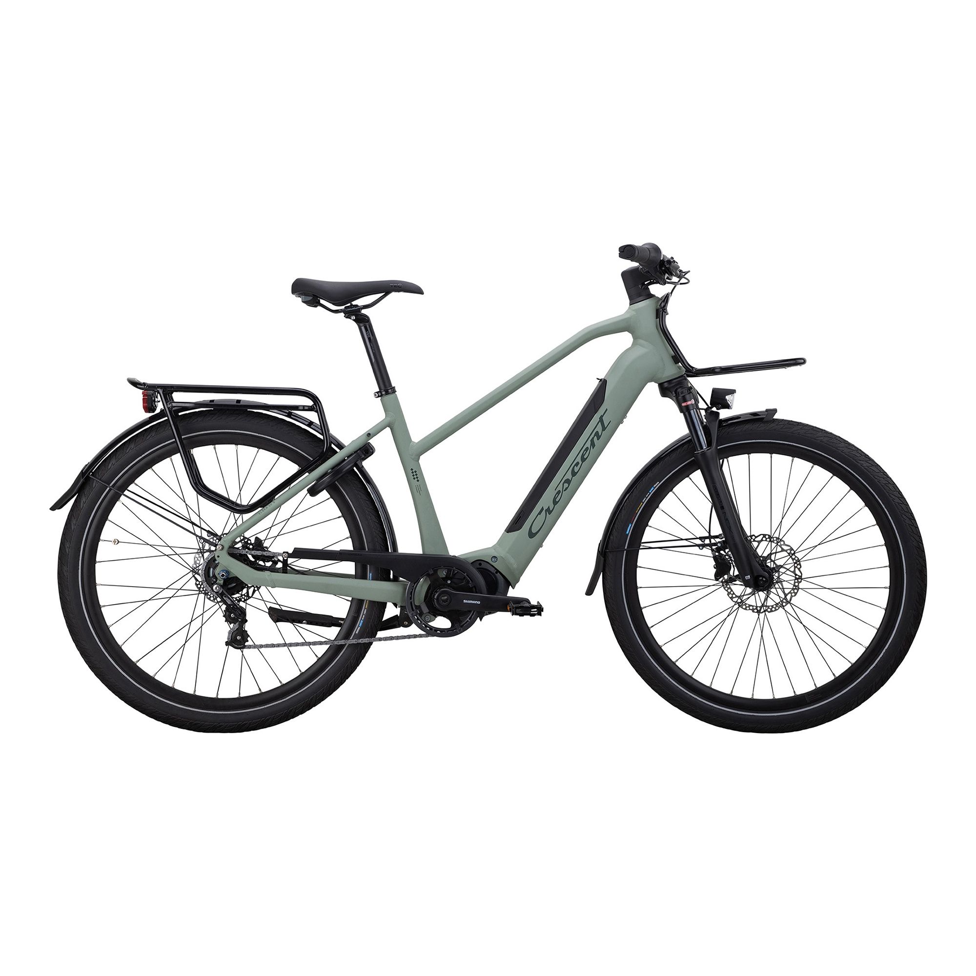 Crescent Elska är en SUV-elcykel som kombinerar modern design med kraftfull prestanda. Med en stark Shimano 6100-motor och 60 nm vridmoment är den idealisk för både pendling och utflykter på grusvägar och skogsstigar. Komforten är i fokus med 60 mm breda däck med punkteringsskydd och en dämpad SunTour-gaffel som minimerar vibrationer. Den avslappnade geometrin ger en sportig men bekväm sittställning som passar både stadstrafik och längre turer. För extra säkerhet är Elska utrustad med ständigt aktiverad belysning, inklusive baklampa med bromsljus, samt reflexer fram, bak och på däcken. Kraftiga hydrauliska skivbromsar säkerställer stabil och effektiv inbromsning. Det integrerade batteriet på 400 Wh kan enkelt laddas både på plats och borttaget.