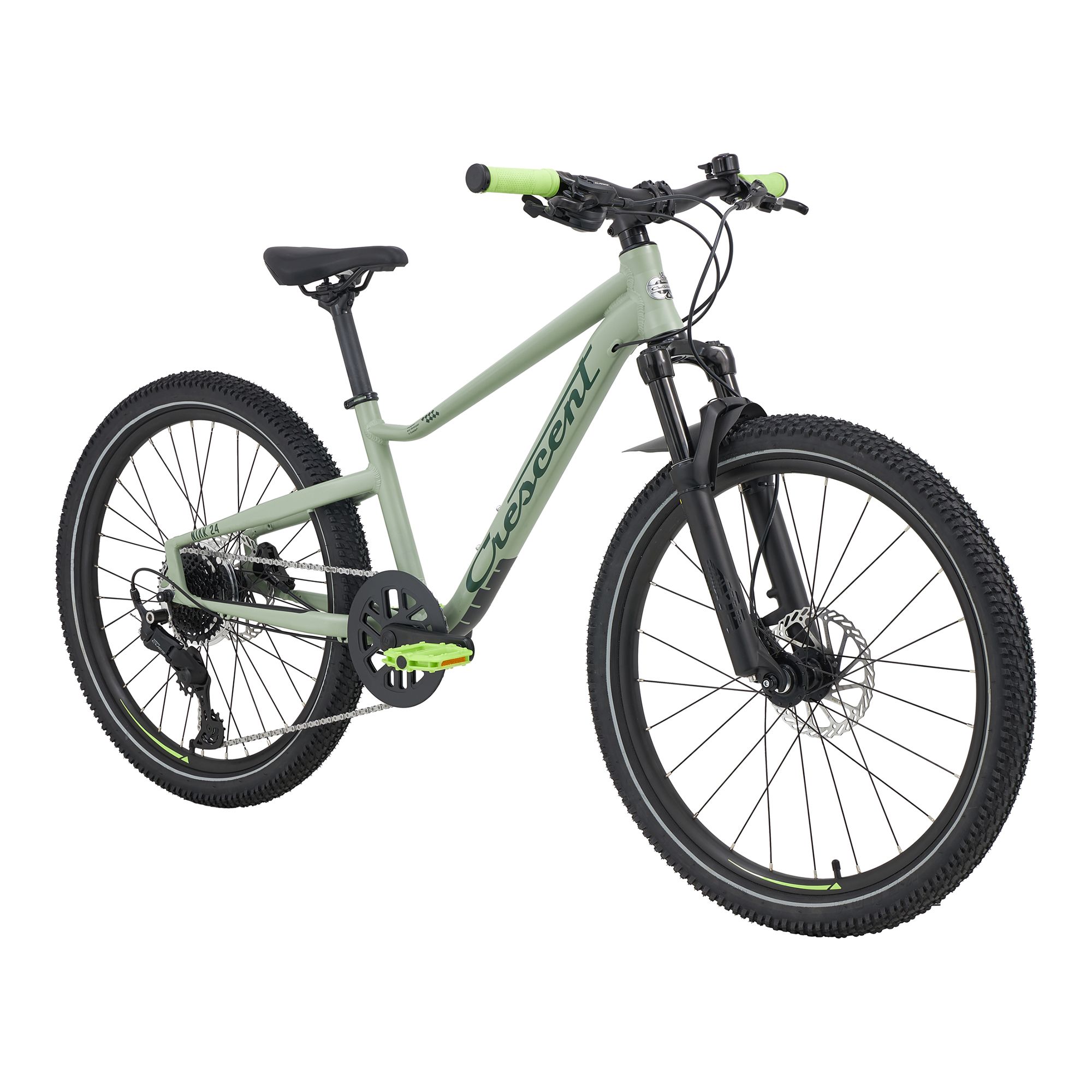 Crescent Niak 24″ är en sportig och robust junior-MTB för cyklister som är cirka 120–140 cm långa och vill ta sina färdigheter till nästa nivå. Den lätta aluminiumramen med junioranpassad geometri ger trygg hantering i både skog och stad, medan den dämpade aluminiumgaffeln är anpassad för barns vikt och tål hopp, rötter och ojämn terräng.