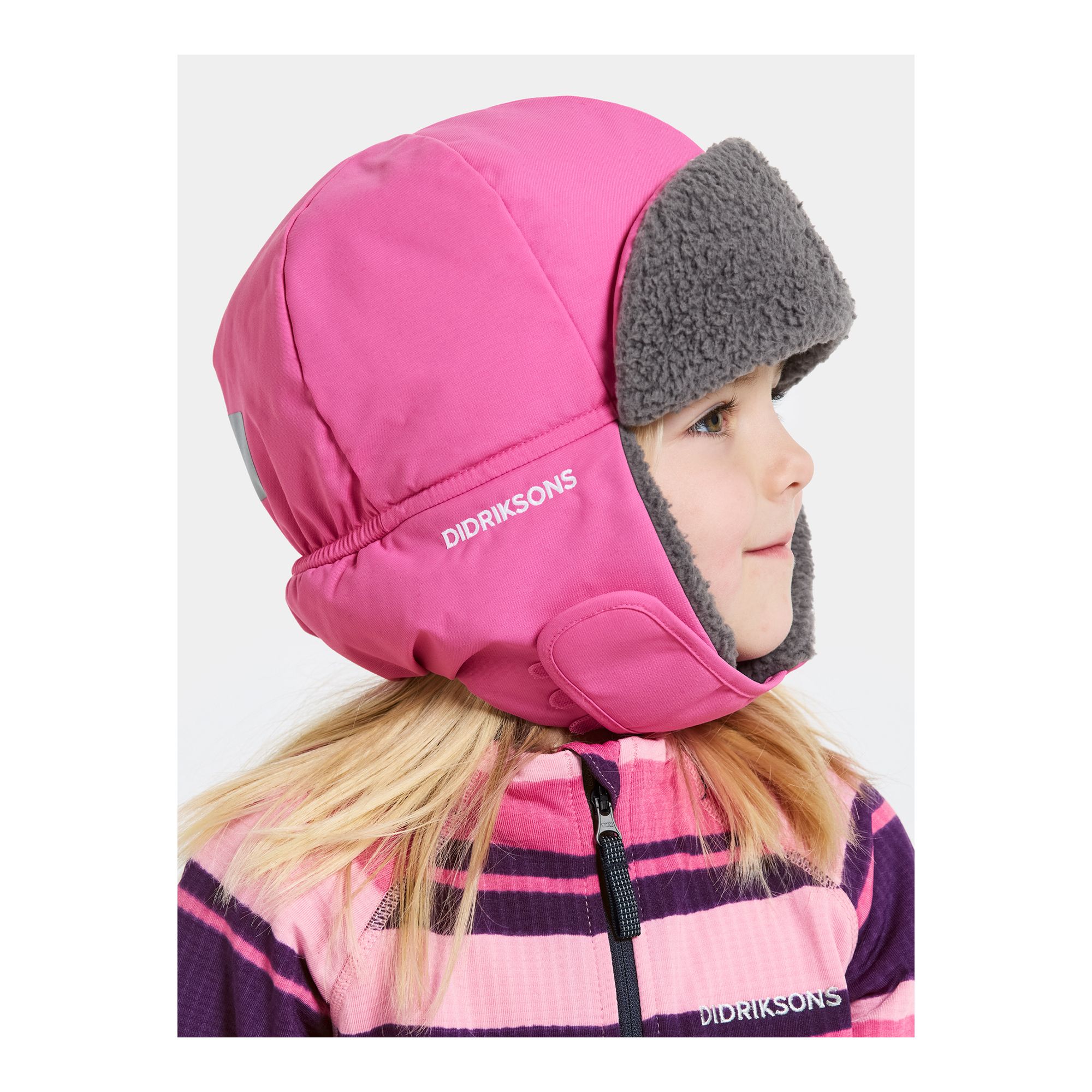 Didriksons Biggles Cap 6 är en funktionell och bekväm mössa för barn, perfekt för kalla dagar och utomhuslek. Den är tillverkad med mjukt, värmande foder och har en vattenpelare på 6 000 mm som tillsammans med tejpade sömmar gör mössan både vatten- och vindtät. Materialet andas för att ge ett behagligt klimat även vid aktiv lek. De nedfällbara öronlapparna och den justerbara hakremmen ger extra skydd och en säker passform, medan reflexdetaljer på baksidan ökar synligheten i mörker. Det vattentäta fodret på insidan ger ett extra lager skydd mot väta.