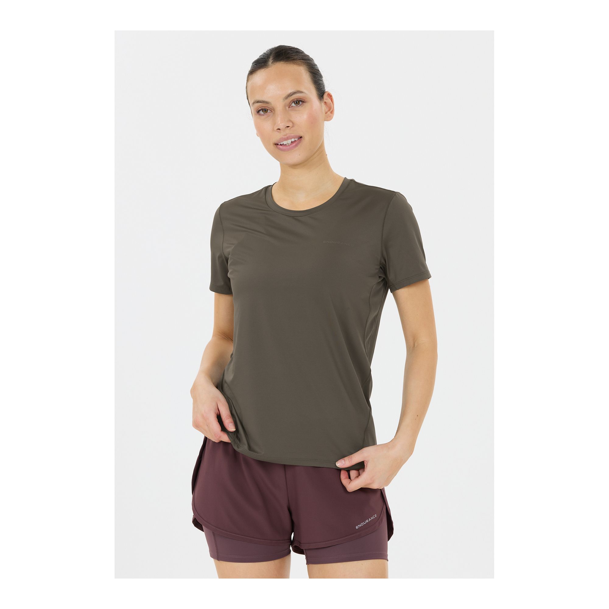 Endurance Nan W S/S Tee är en teknisk löpartröja med kort ärm som är gjord för att ge dig rörelsefrihet och komfort under varje träningspass. Materialet är lätt, följsamt och har 4-vägsstretch som gör att du kan röra dig obehindrat. Den effektiva Quick Dry-teknologin säkerställer att tröjan torkar snabbt efter svettiga pass. Under armarna finns ventilerande meshpaneler som ökar luftflödet och hjälper till att hålla dig sval. För bättre synlighet i svagt ljus är tröjan utrustad med reflekterande detaljer. En funktionell och bekväm t-shirt för löpning och utomhusträning.