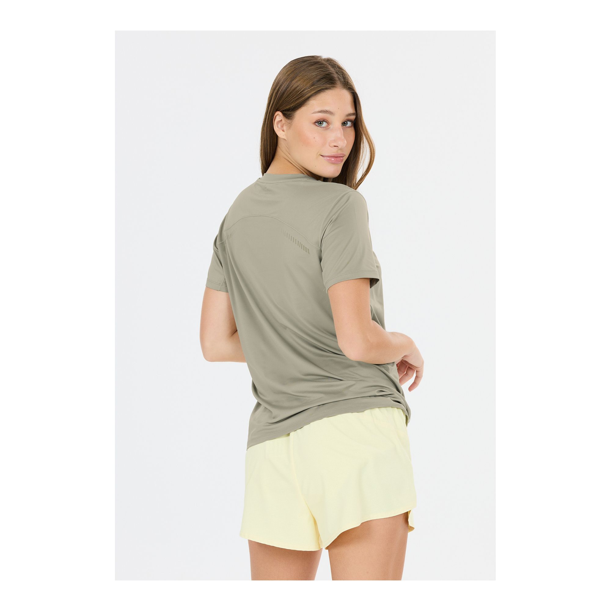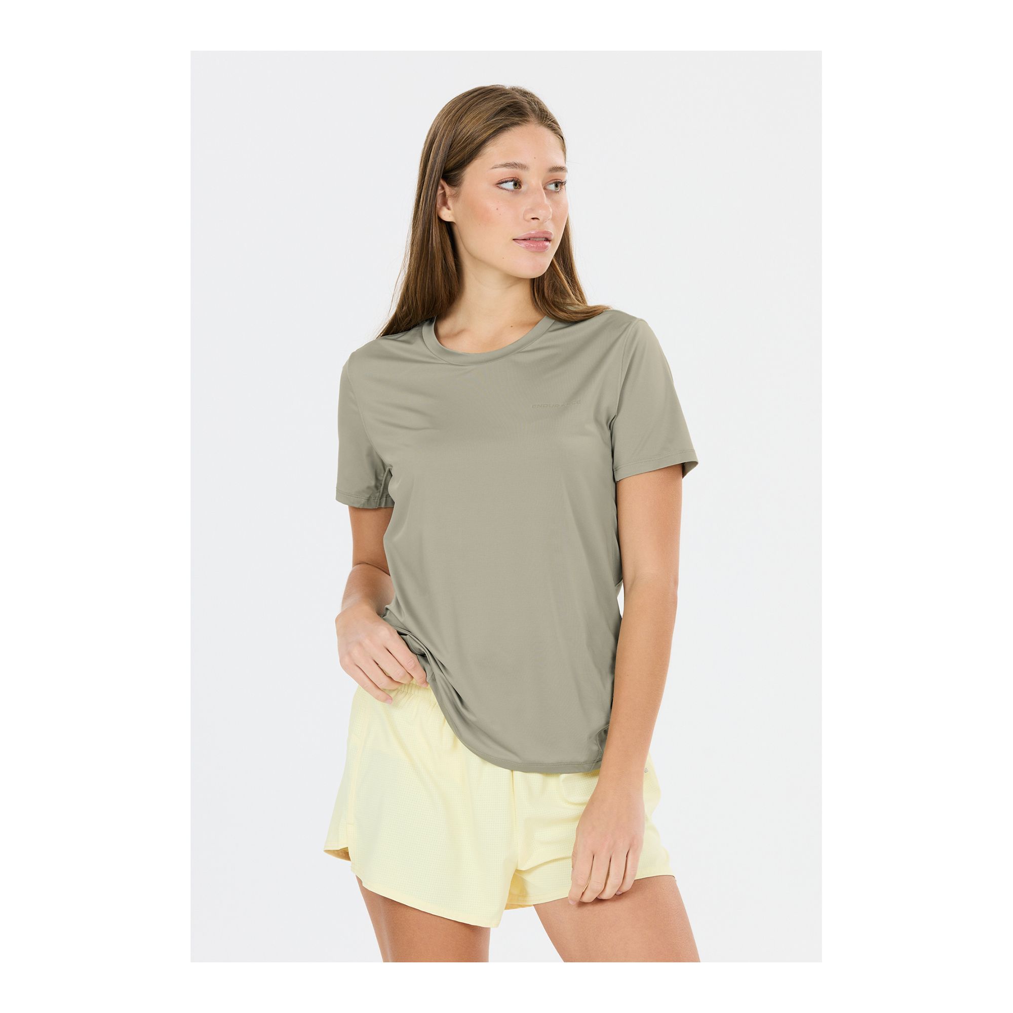 Endurance Nan W S/S Tee är en teknisk löpartröja med kort ärm som är gjord för att ge dig rörelsefrihet och komfort under varje träningspass. Materialet är lätt, följsamt och har 4-vägsstretch som gör att du kan röra dig obehindrat. Den effektiva Quick Dry-teknologin säkerställer att tröjan torkar snabbt efter svettiga pass. Under armarna finns ventilerande meshpaneler som ökar luftflödet och hjälper till att hålla dig sval. För bättre synlighet i svagt ljus är tröjan utrustad med reflekterande detaljer. En funktionell och bekväm t-shirt för löpning och utomhusträning.