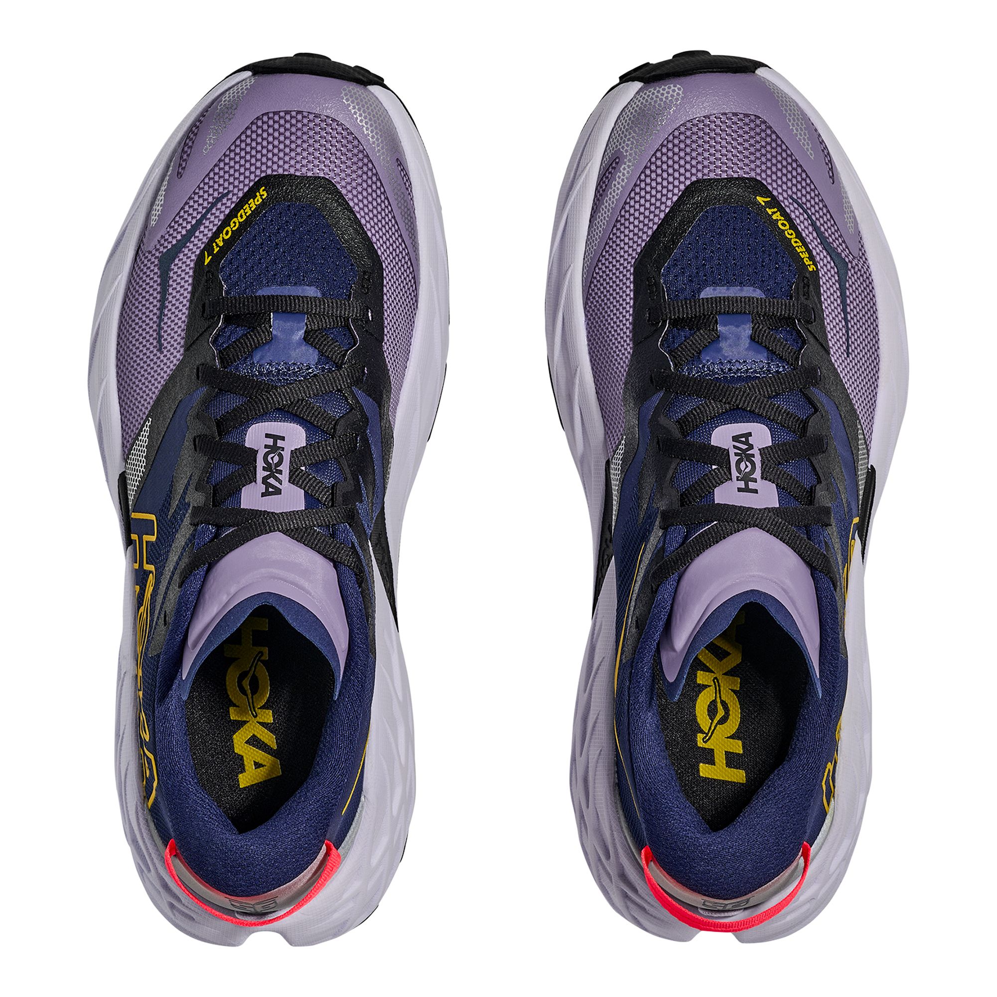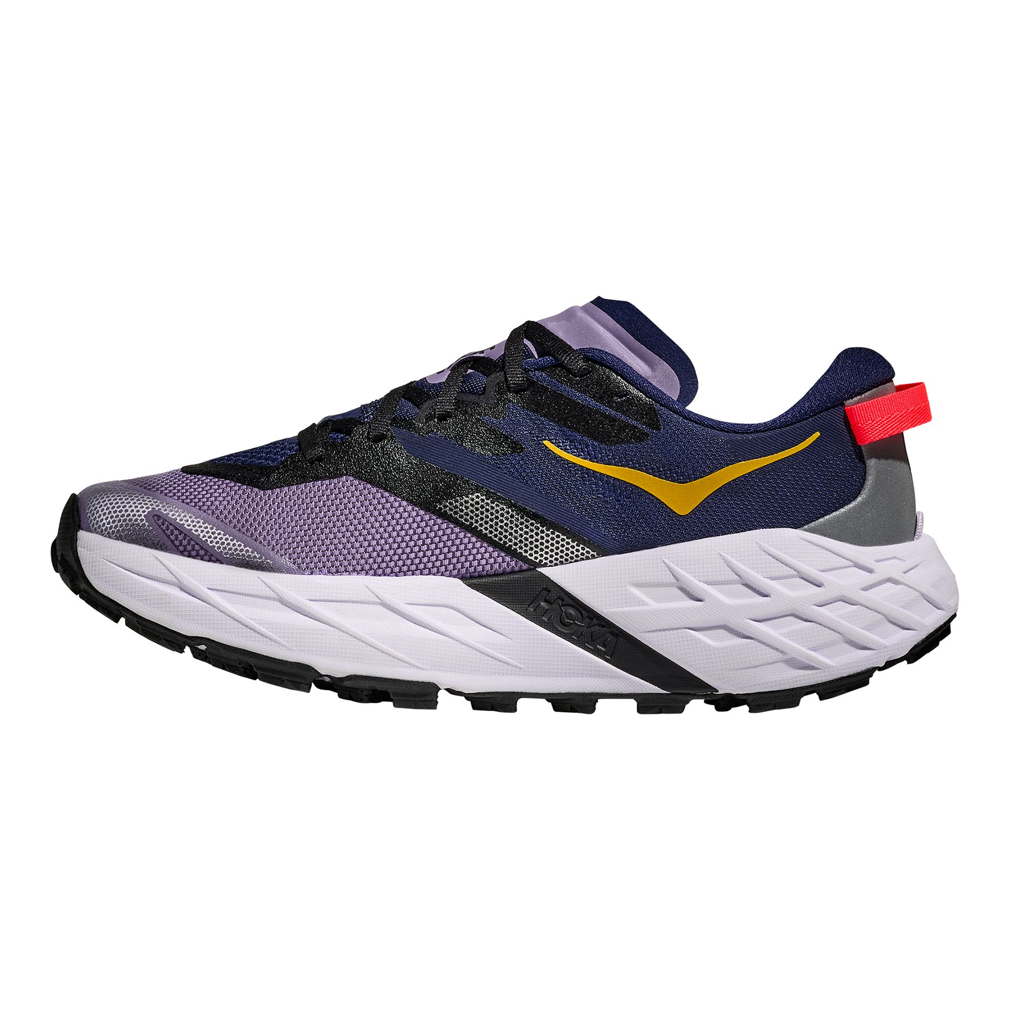 Hoka M Speedgoat 7 är en uppdaterad trailsko som är utvecklad för löpning på stig, terräng och tekniskt underlag. Skon har fått en ny mellansula i superkritiskt EVA-skum som ger en mer livlig och följsam löpkänsla, samtidigt som den välkända dämpningen från tidigare versioner finns kvar. Den förbättrade dämpningen bidrar till ökad komfort och bättre respons, vilket gör löpningen mindre tröttande även över längre distanser. Ovandelen är uppdaterad med ett mer slitstarkt och bekvämt material som behåller den trygga passformen från tidigare modeller. Den förbättrade hälkonstruktionen ger ett stabilt fotfäste och ökad komfort runt hälen. Yttersulan i Vibram Megagrip är utrustad med ett optimerat mönster och dubbar som ger mycket bra grepp på både torra och hala underlag. Det gör att skon känns säker och kontrollerad även på tekniska stigar och i kuperad terräng. Speedgoat 7 är en mångsidig trailsko som passar löpare på alla nivåer, oavsett om passen är korta eller långa, lugna eller intensiva.