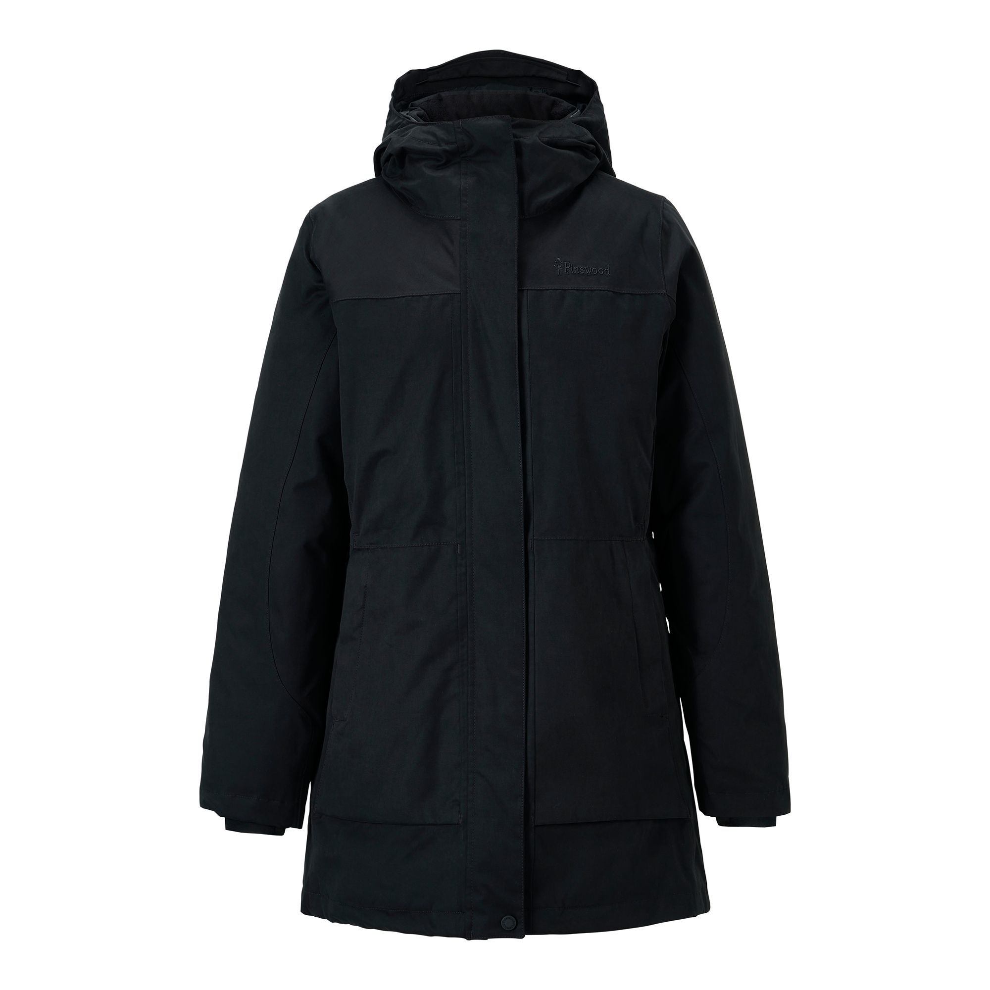 Pinewood® Vadderad vinterparkas för har en fyllning av återvunnen polyester från återvunna PET-flaskor som har blåsts in i kanalerna med 550+ Fillpower för extra värmande egenskaper. Parkasen är gjord i ett material med hög andningsförmåga och mjuk handkänsla. Det är vind- och vattentätt med tejpade sömmar för att stå emot vinterns alla väderomslag. Jackan har stora framfickor med magnetiska lock som stängs smidigt, handvärmarfickor med fleecefoder där du kan värma händerna under kalla dagar samt två bröstfickor och en innerficka med dragkedjor för säker förvaring.