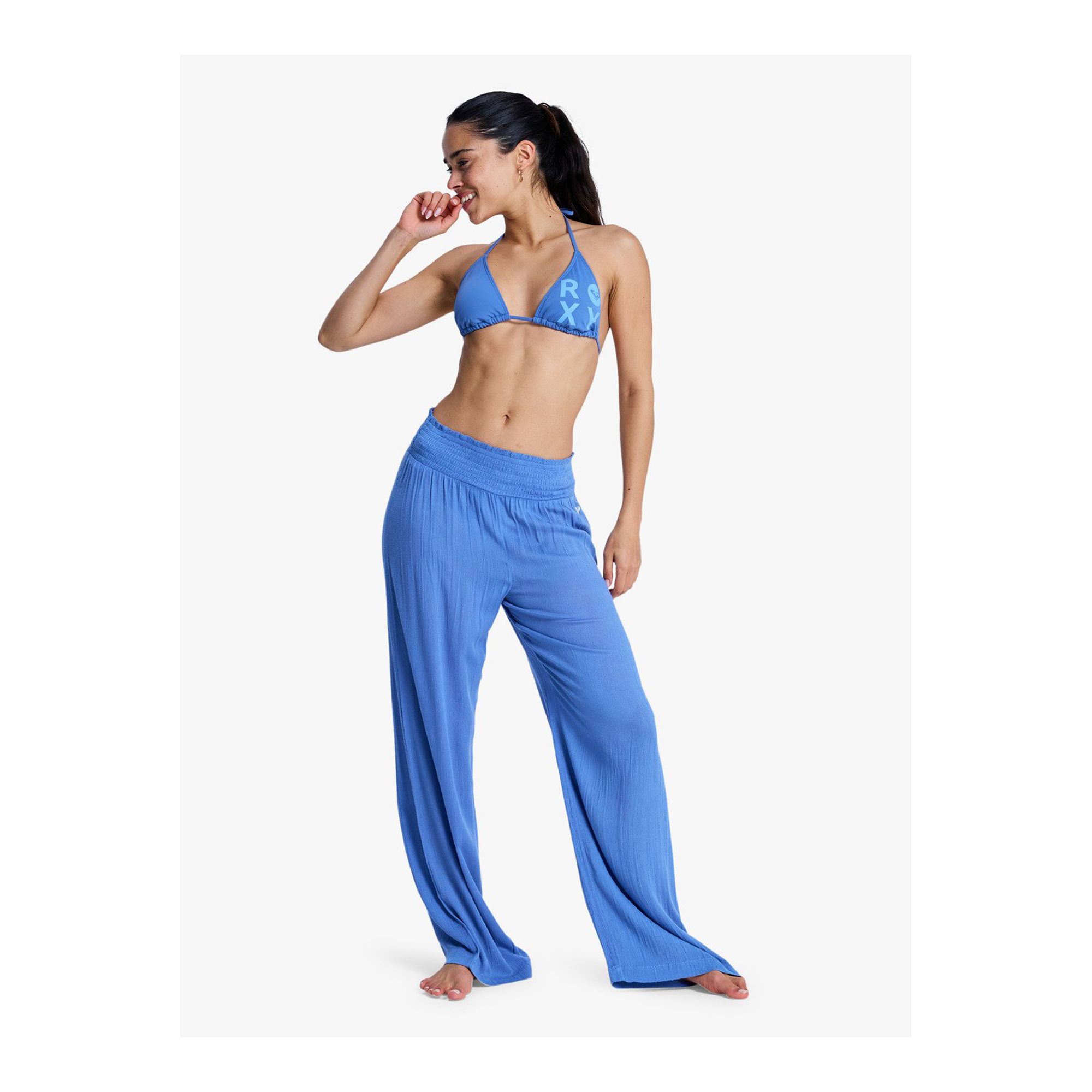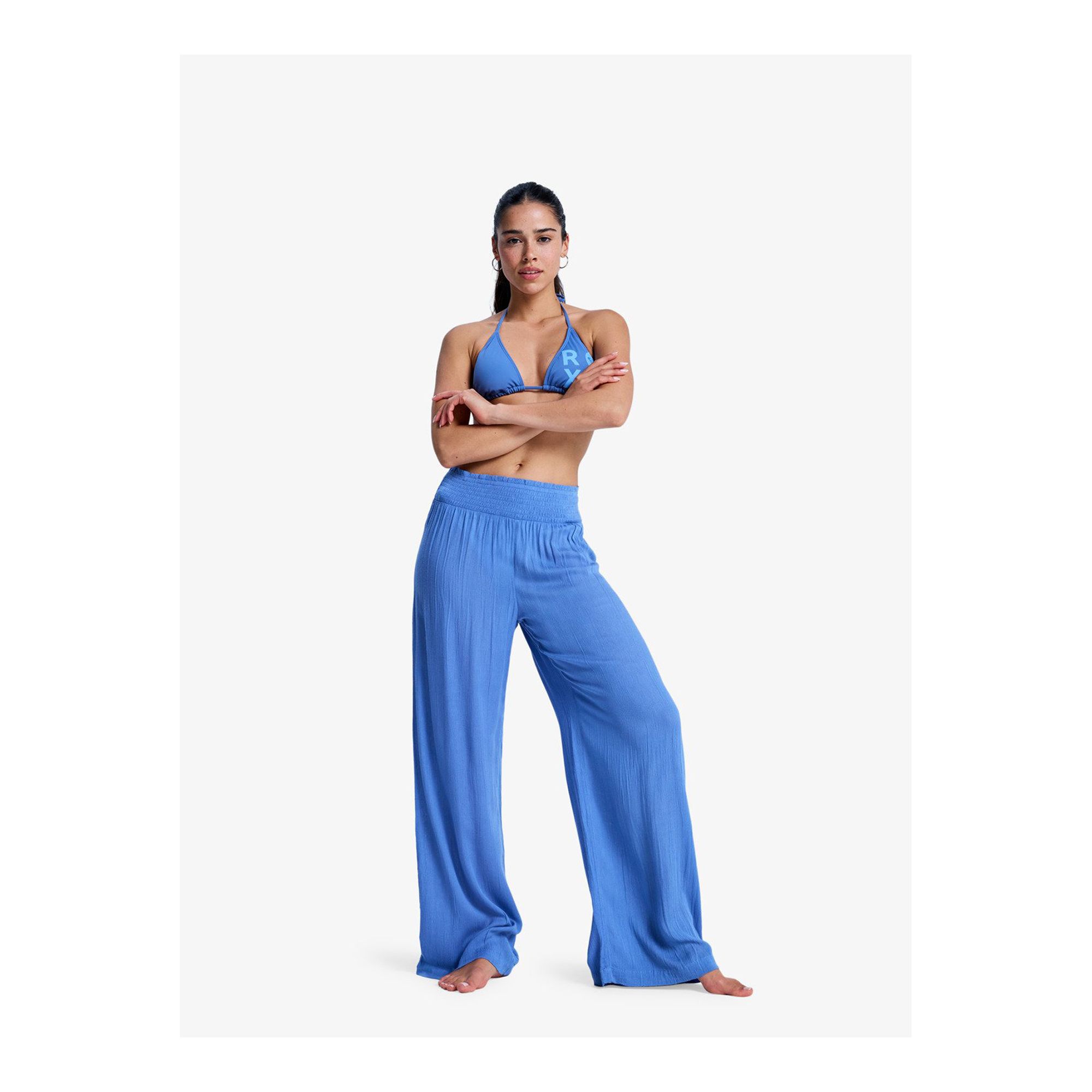 Roxy Along The Sunset är bekväma strandbyxor för dam, designade för varma dagar vid stranden eller lediga sommardagar i vardagen. Byxorna är tillverkade i hållbar, krinklad viskos som ger ett lätt och luftigt fall med en mjuk känsla mot huden. Den elastiska midjan bidrar till hög komfort och gör byxorna enkla att ta på, samtidigt som den bekväma passformen ger god rörelsefrihet. En diskret broderad ROXY-hjärtlogotyp adderar en feminin och stilren detalj som fulländar den avslappnade looken.