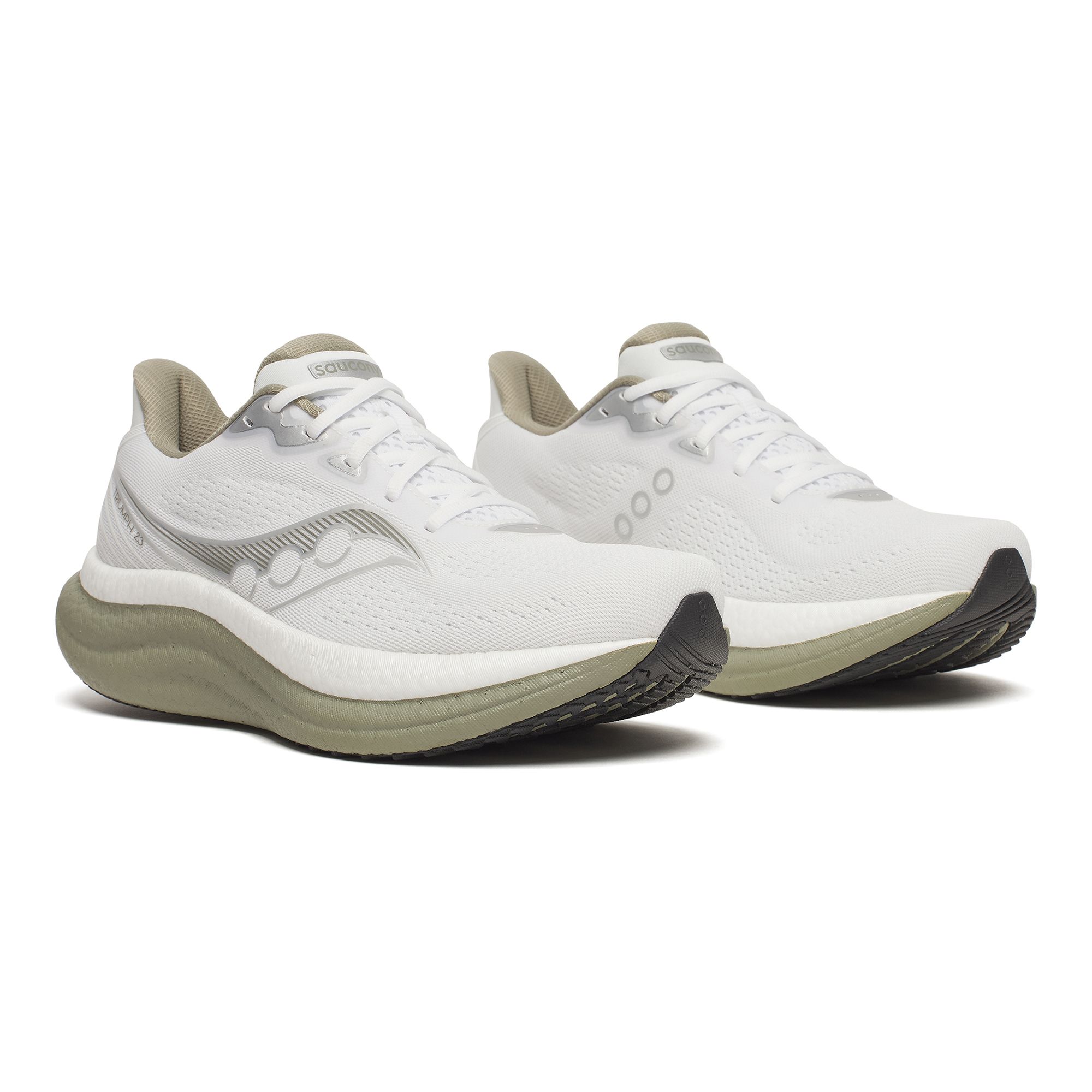 Saucony Triumph 23 M är löparskon för dig som vill ha allt: fantastisk komfort, överlägsen stötdämpning och en energiåtergivning som tar löpupplevelsen till nya höjder. Mellansulan i Sauconys bästa PWRRUN PB-material är nu lättare, mer stötabsorberande och ännu mer responsiv, samtidigt som livslängden är tre gånger så lång jämfört med EVA-baserade alternativ och minimalt påverkas av yttertemperaturer. Skons 10 mm dropp, kombinerat med en rundad häl- och framdel på mellansulan, ger en mjuk och avlastande rörelse. Den breda sulbasen ökar markkontakten och minskar rotationskraften vid belastning. Mellansulan är anatomiskt formad för att ge stabilt stöd runt häl och hålfot. Ovandelen består av formbar, sömlös och välventilerad mesh, kompletterad med ett integrerat snörningssystem och tillverkad av återvunnet material för en mer hållbar löparupplevelse. Yttersulan i slitstarkt XT900-gummi ger låg vikt och säkert grepp på olika underlag. Perfekt för dig som vill springa längre och bekvämare – varje steg räknas.