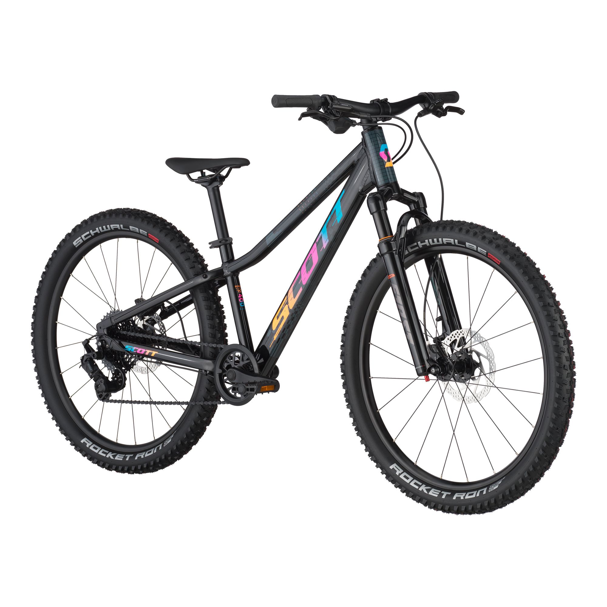 – Däck fram: Schwalbe Rocket Ron Evolution, ADDIX Speed, 67 EPI, 24×2,35″, vikbart