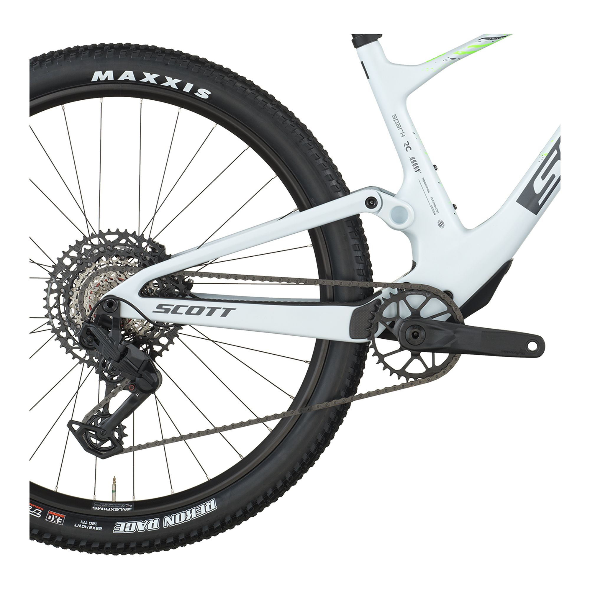 – Ram: Spark RC Carbon HMF med Integrated Suspension Technology, flex pivot, justerbar styrrörsvinkel, Syncros Cable Integration System, BB92, UDH-interface, 12×148 mm bakaxel och 55 mm kedjelinje