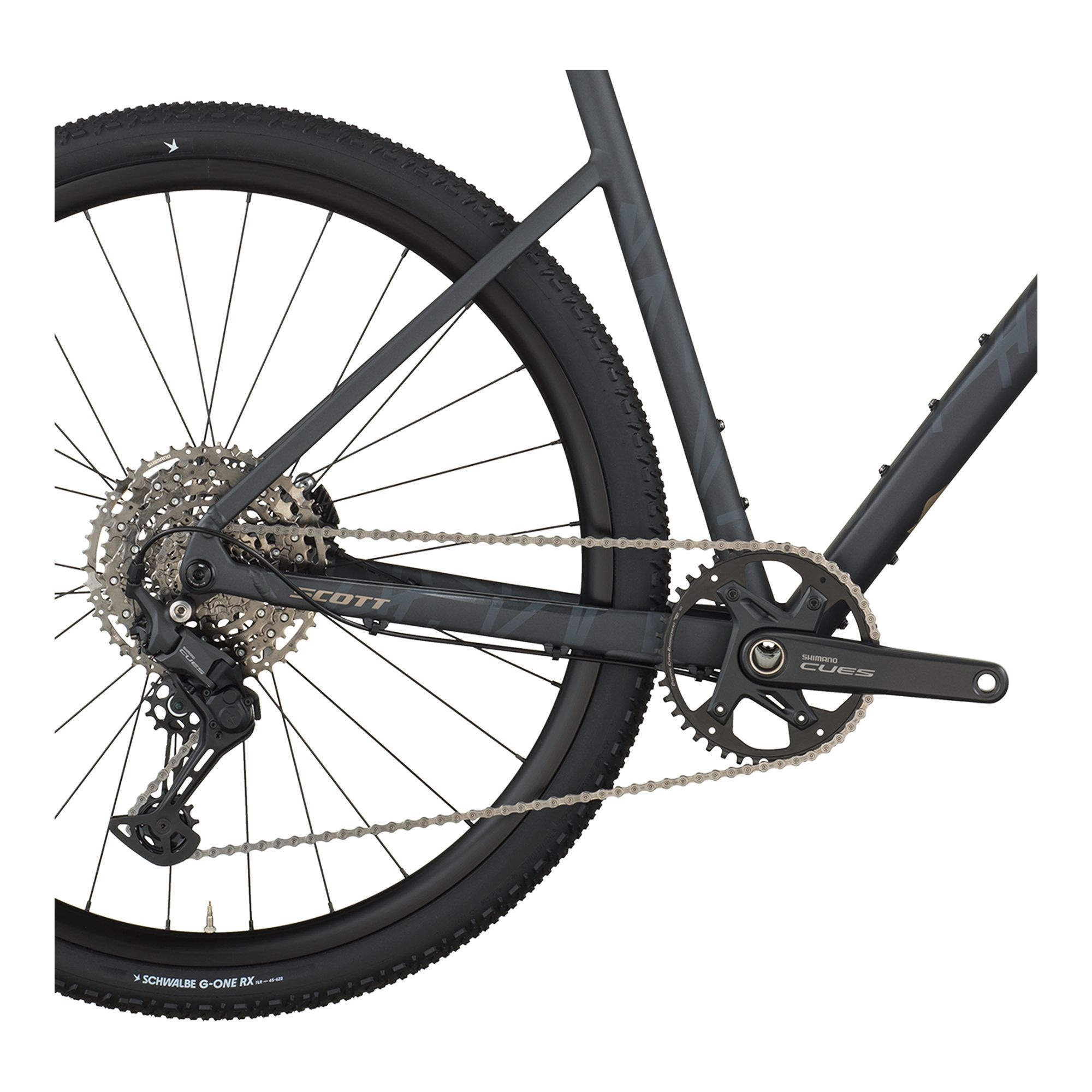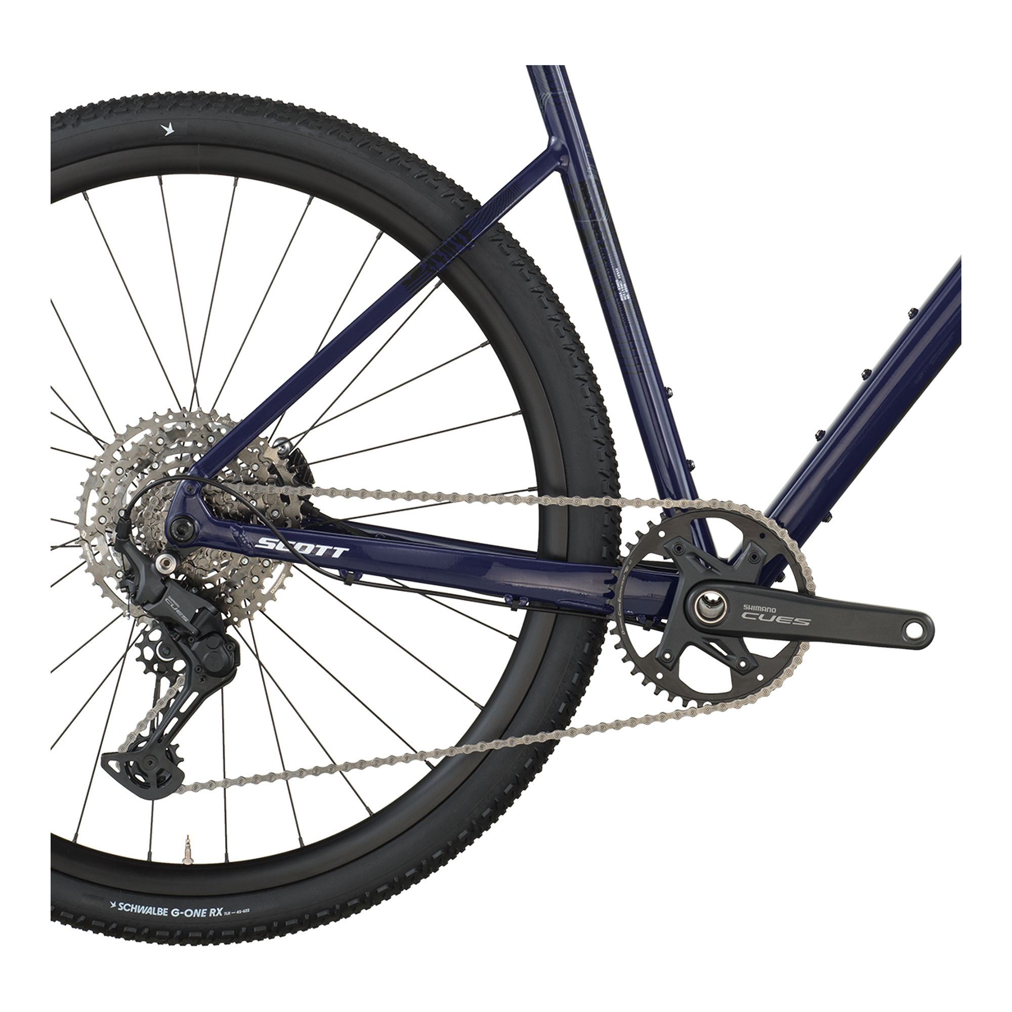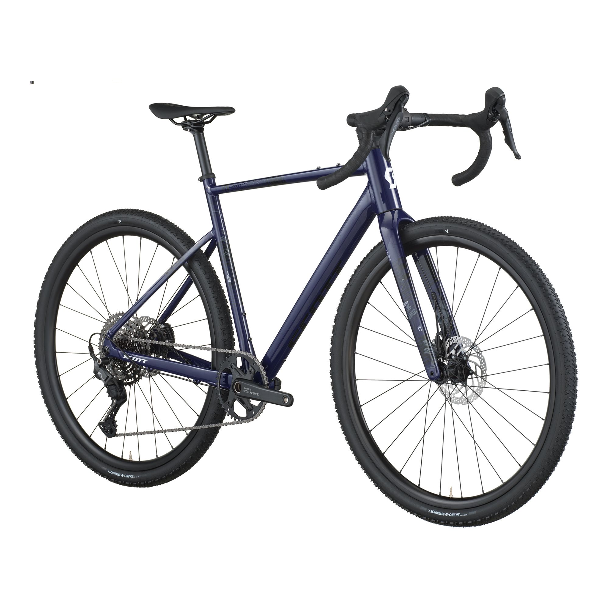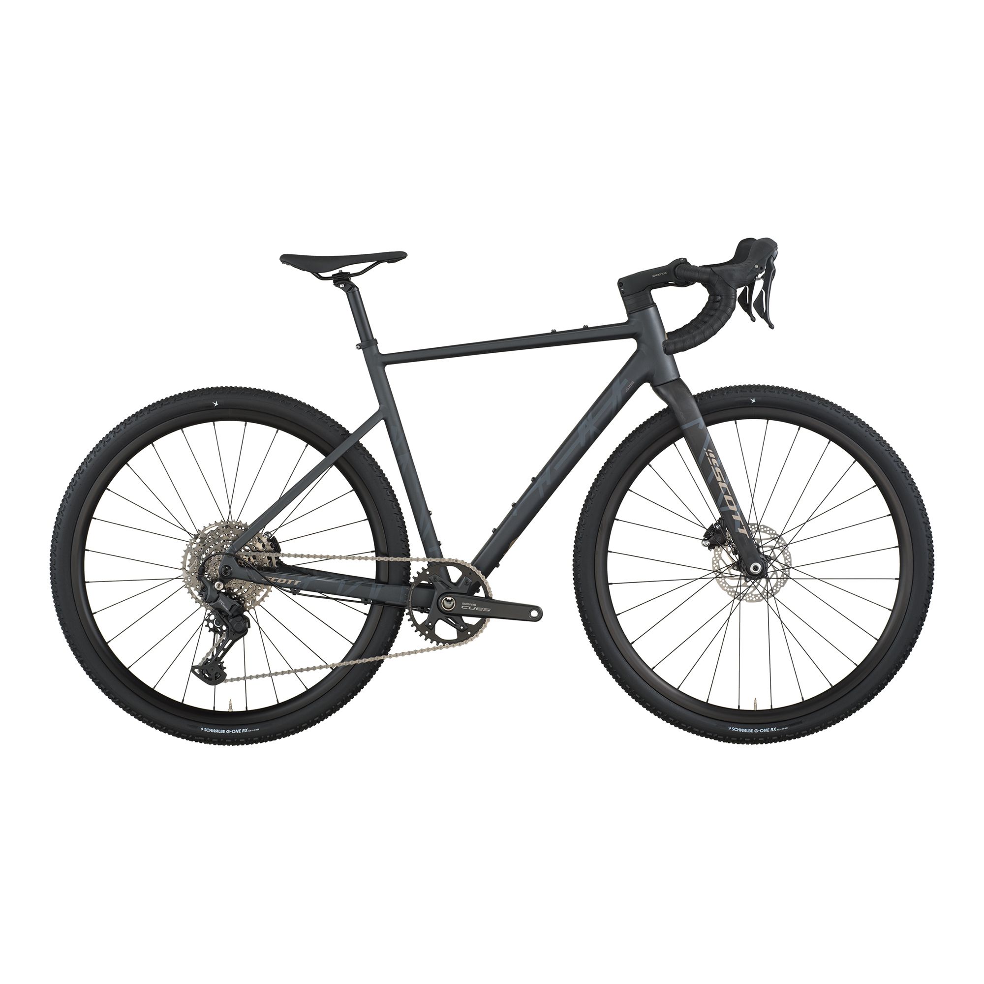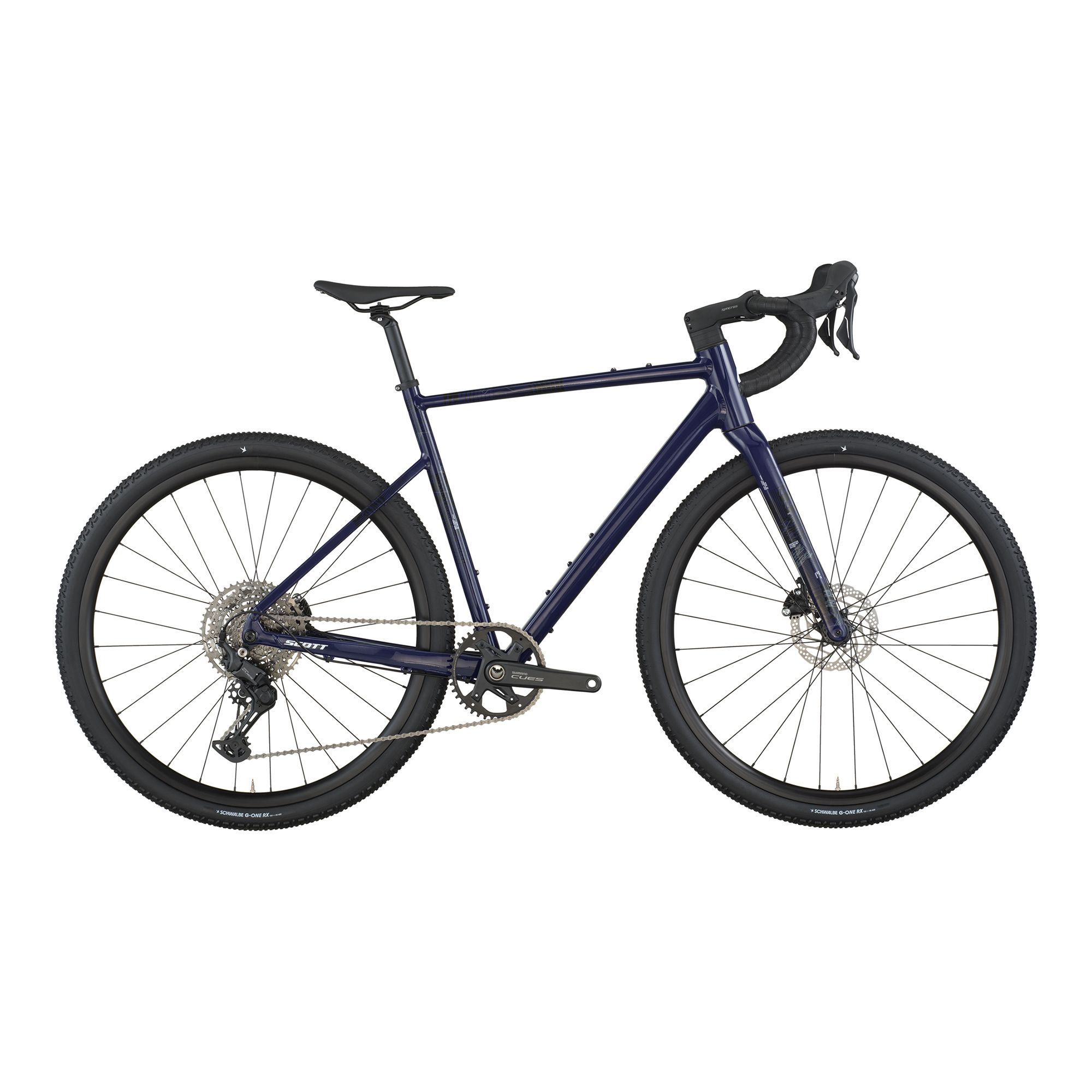 – Ram: Speedster Gravel i dubbelreducerad aluminium 6061 med SCOTT gravel-geometri, utbytbar UDH-växelöra, invändig kabeldragning och förberedd för Syncros skärmsats