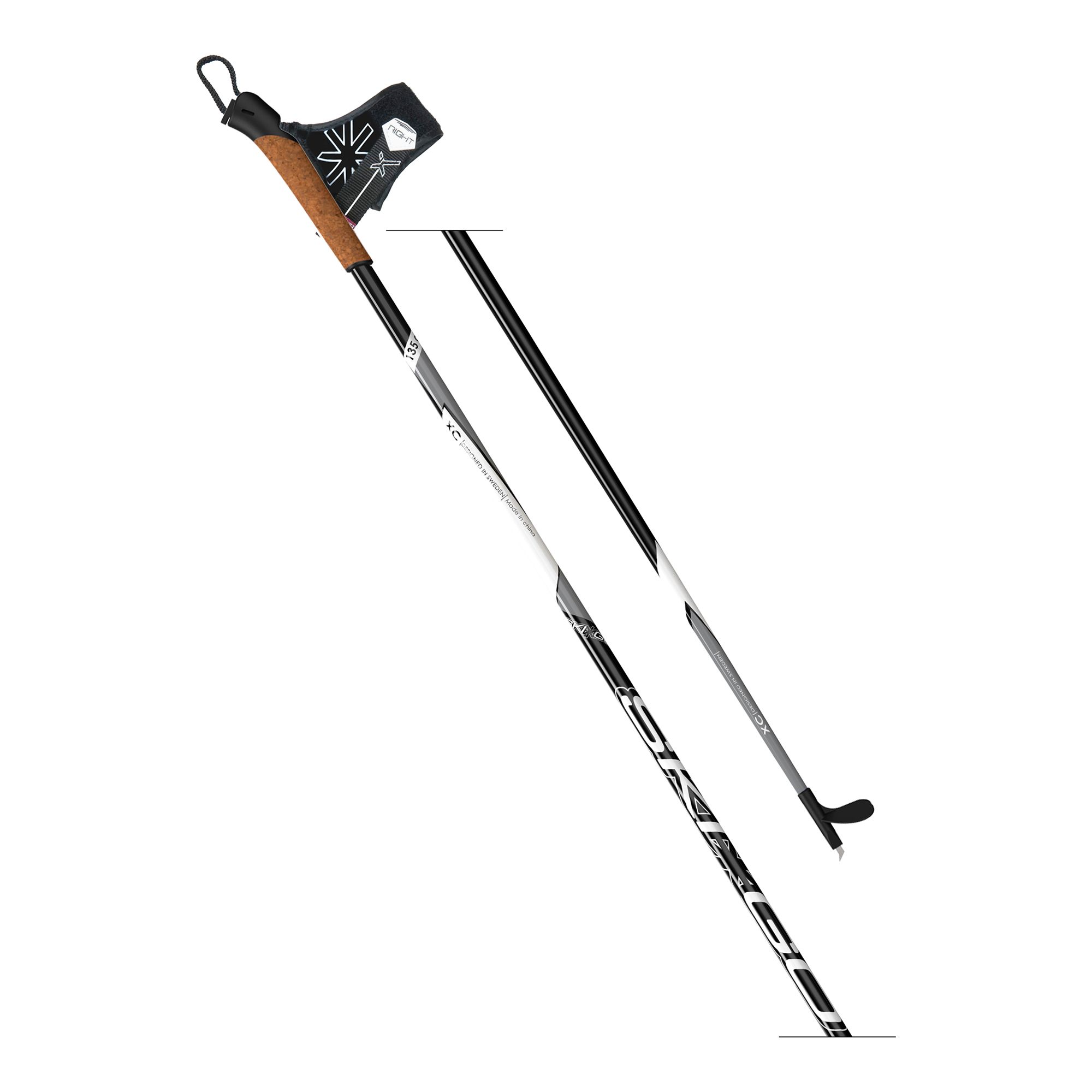 Skigos XC stav är något flexiblare (inte lika styv) än Vasa. Relativt stora trugor som gör att staven klarar mjukare snöförhållanden där den annars vill till att gå igenom och fastna i snön. Komfortabelt korkhandtag som ger ett bra grepp och värme till åkaren. Funktionell pendel och mycket lätthanterlig stav.