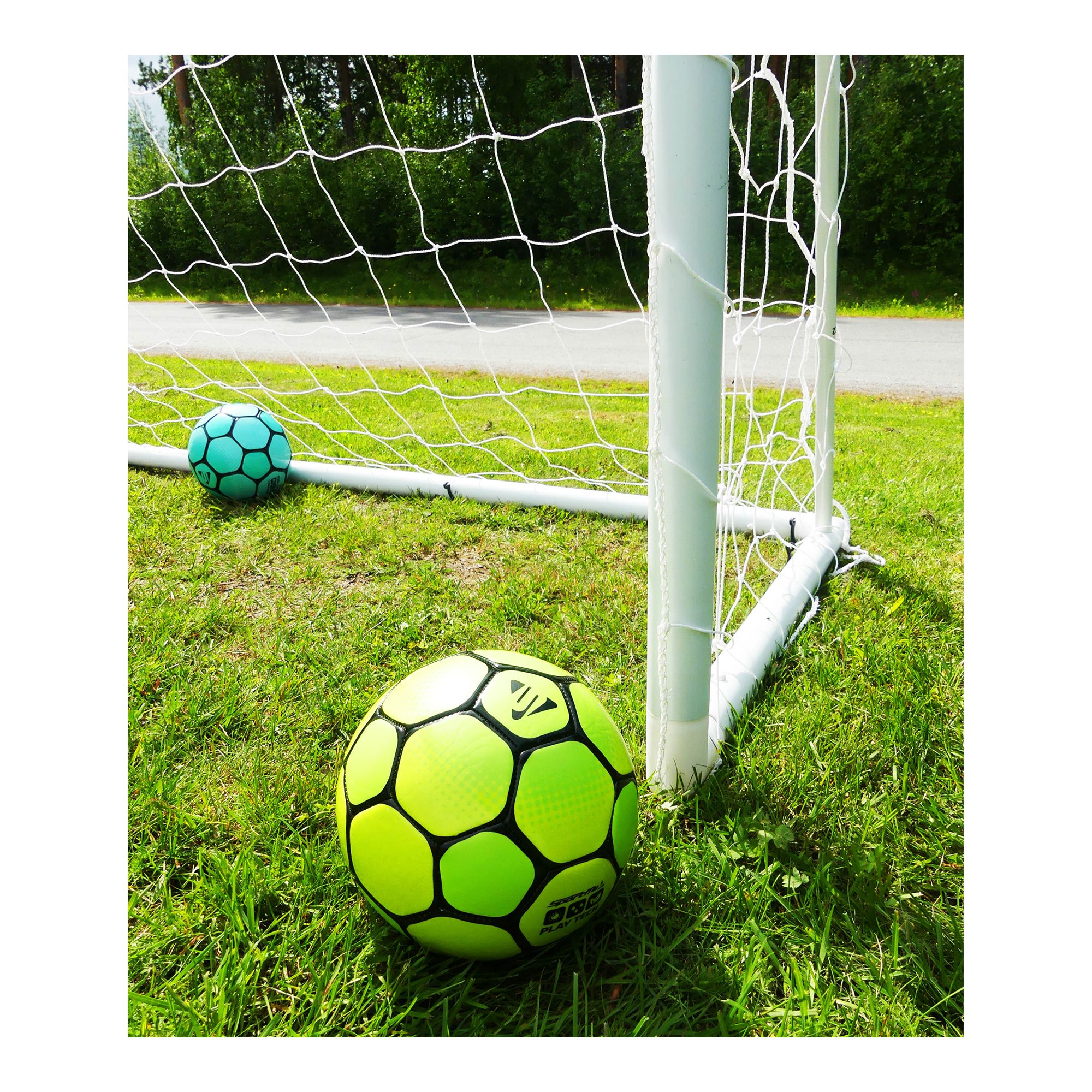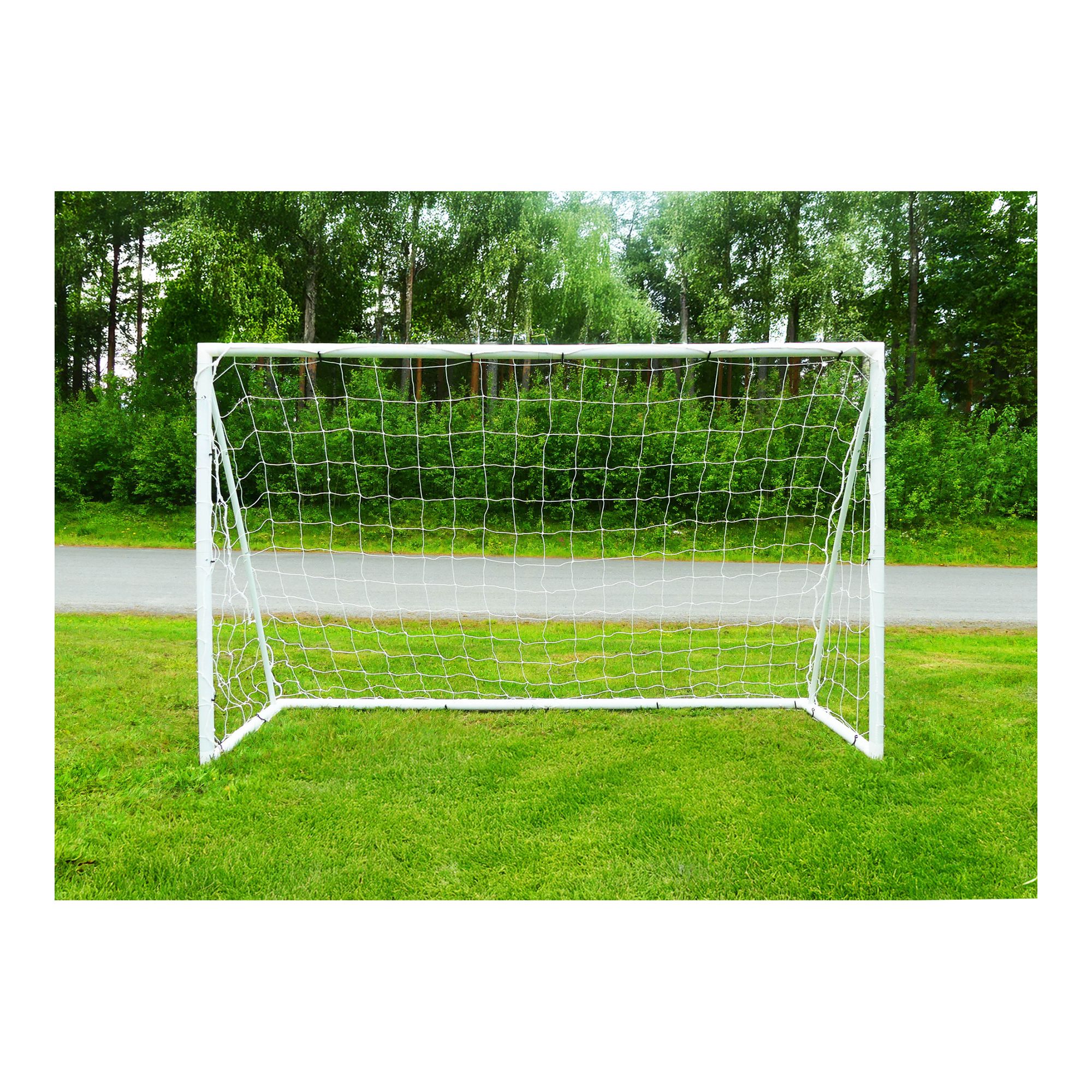 Stabilt fotbollsmål i hållbar uPVC med enkelt klicksystem och vädertåligt nät.