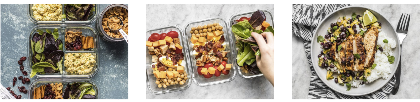Meal prep är ett uttryck som har fått mer och mer fäste inom hälsorörelsen de senaste åren. Idén bygger på att planera veckans måltider i förväg och laga mycket mat vid samma tillfälle för att spara tid och underlätta för kommande dagars måltider. Genom att både förbereda lunch i matlådor och stapelvaror till middagarna ger man sig själv bättre förutsättningar att äta nyttigt hela veckan. Grundtanken är alltså att alltid vara steget före sig själv så att man inte trillar dit och gör dåliga val när man är trött, stressad och hungrig.