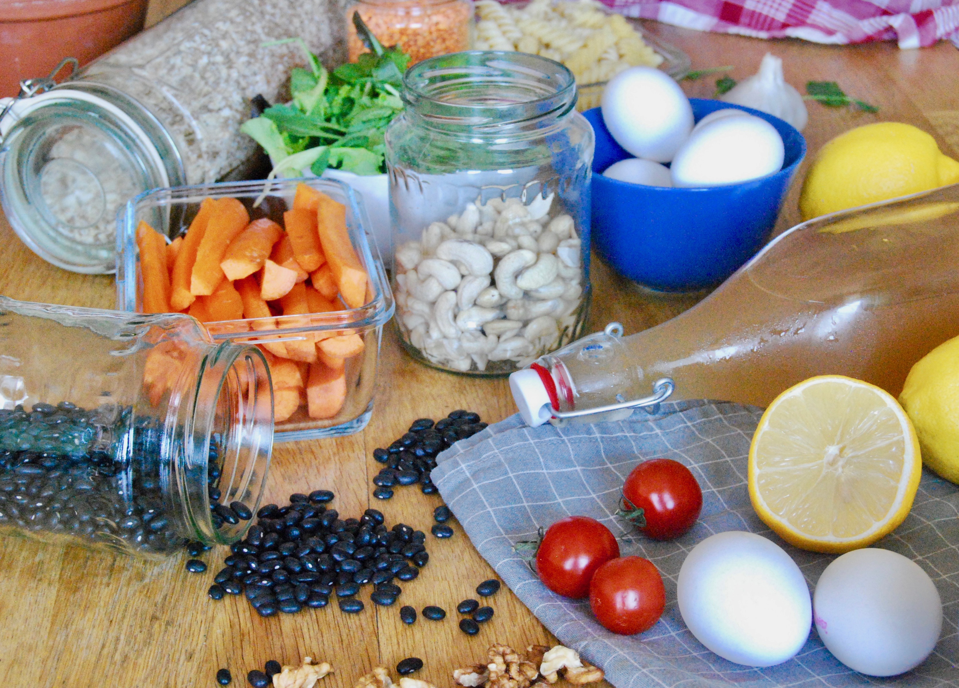 När jag meal preppar har jag oftast inte en färdig plan för vilka förberedelser som hör till vilka maträtter, utan brukar tänka att jag förbereder en soppa, kokar någon form av gryn, gör en eller ett par olika såser eller dressingar, rostar rotfrukter och tvättar och skalar råa grönsaker och frukter. Sen går jag på känsla och lägger ihop olika komponenter till en sallad ena dagen, i wraps en annan dag, kanske kompletterar med pasta en tredje dag osv. Om man har något ur varje kategori nedan kommer man väldigt långt.